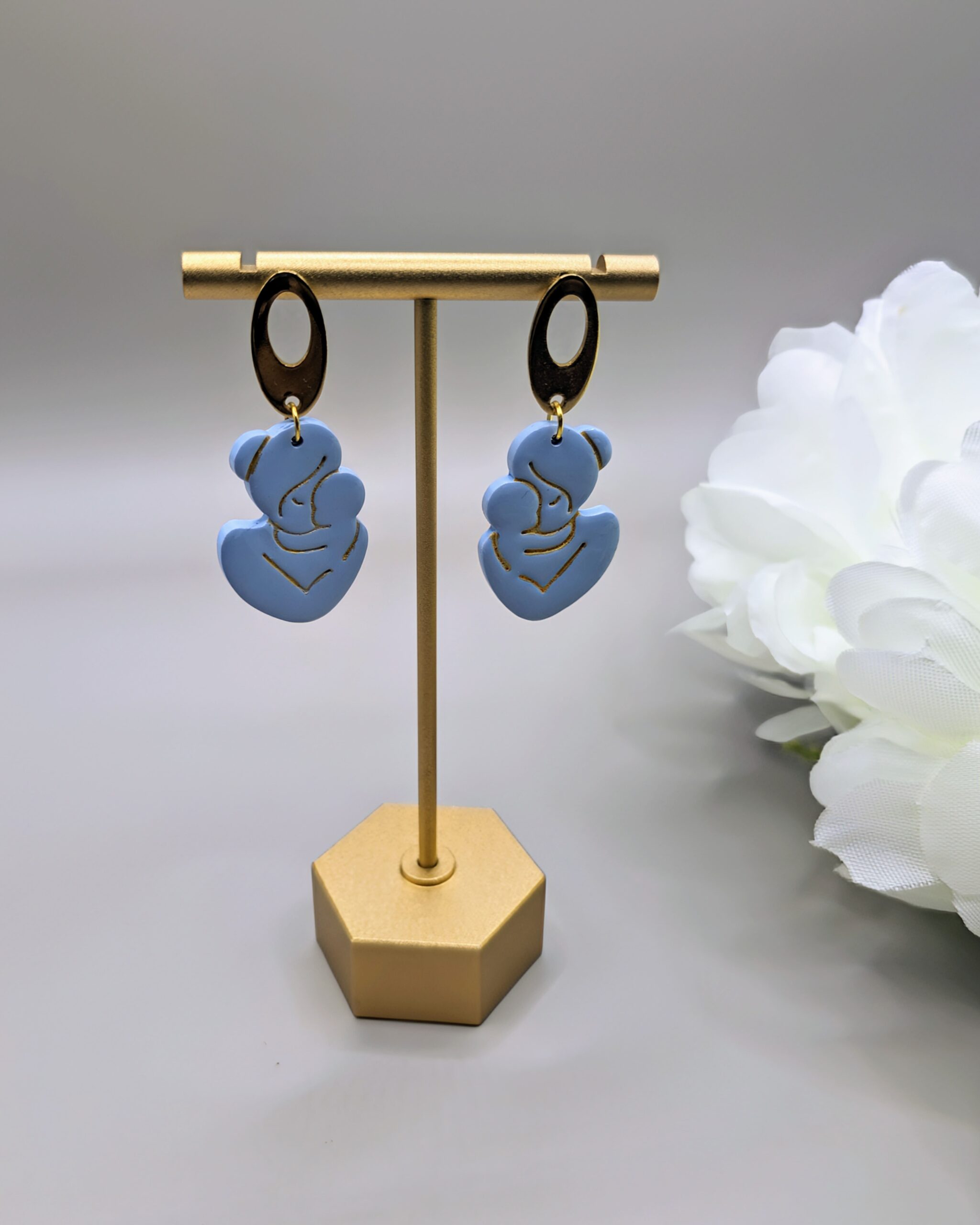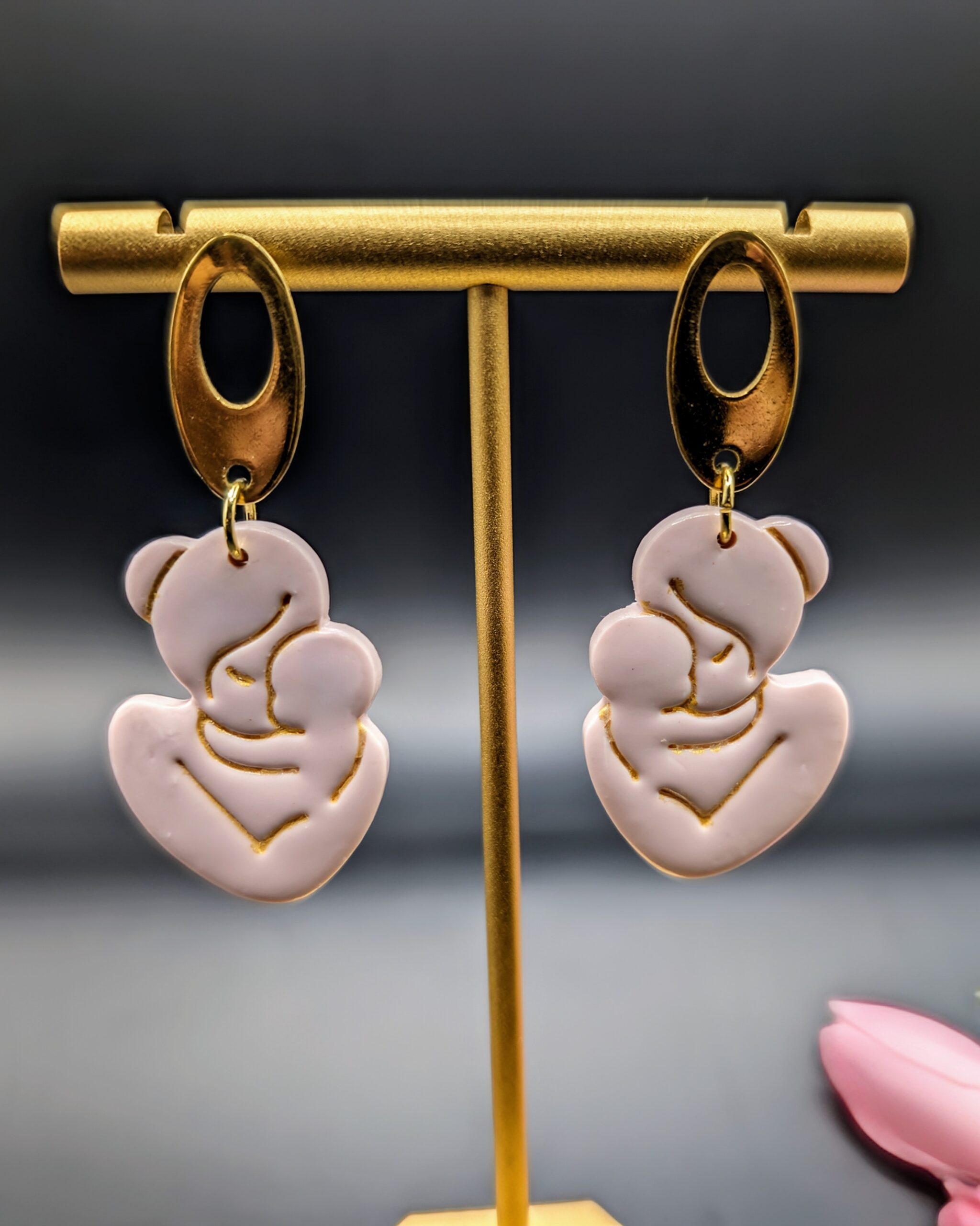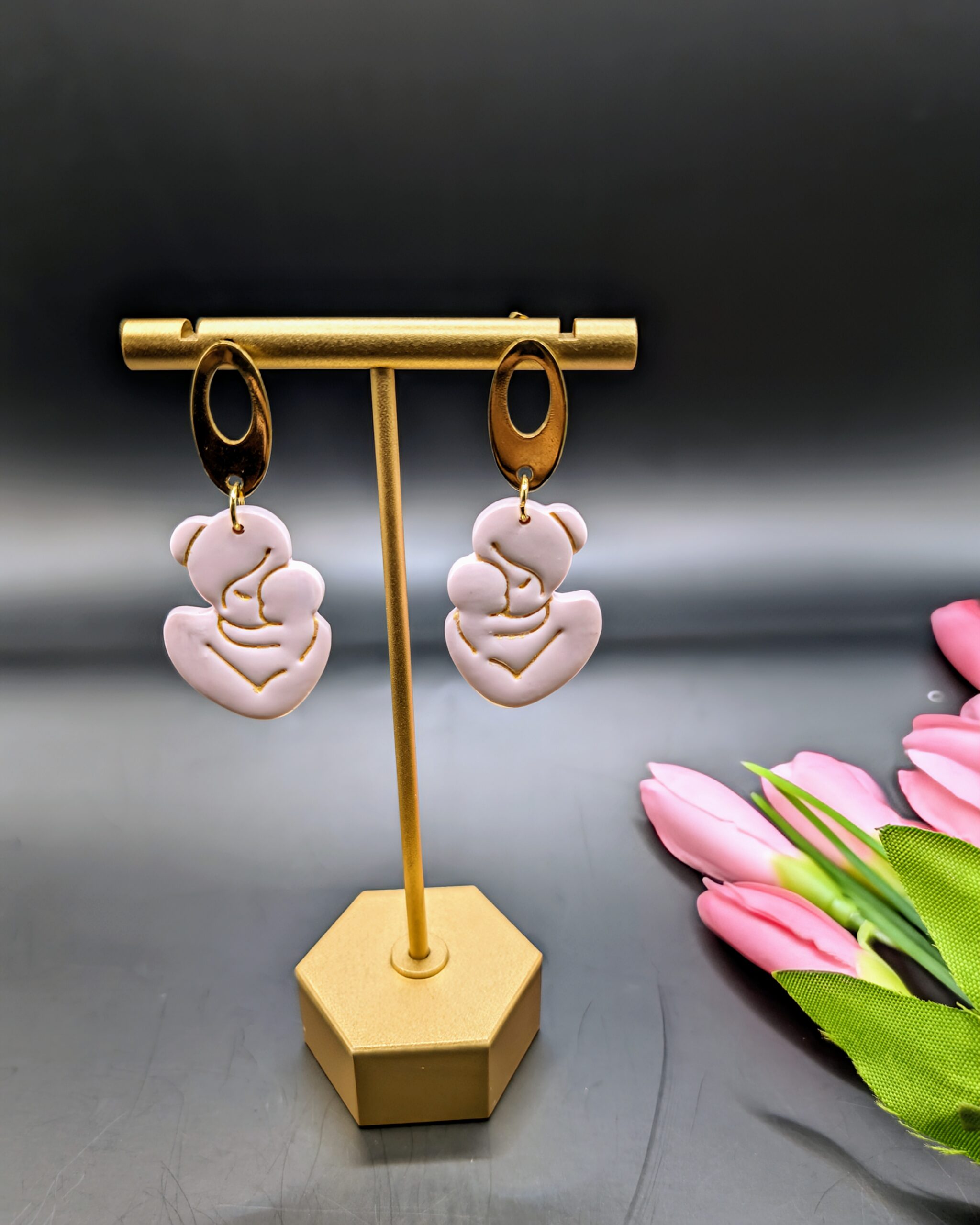 Combining various colours and intricate designs, our earrings stand out as unique expressions of personal style. Whether you’re drawn to the sleek modernity of stainless steel, the luxury of gold-plated accents, or the rustic charm of brass, the added charms on our polymer clay earrings will add a touch of sophistication to every outfit.Â